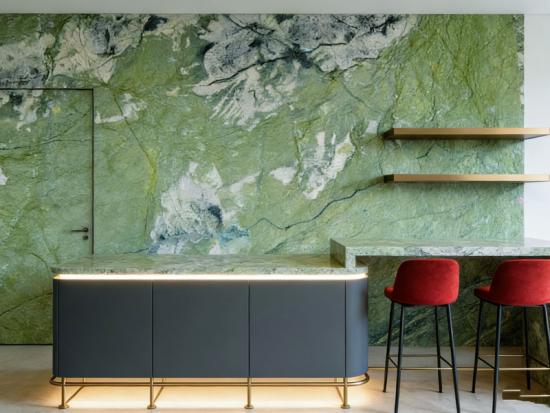 Marmer Hijau Apel adalah batu alam mewah, sempurna untuk membuat meja dapur kelas atas dalam proyek hotel.