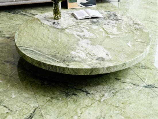 Nuansa hijau unik dari Marmer Hijau Apel menghadirkan kesan segar dan alami pada setiap ruangan, menjadikannya pilihan yang sangat baik untuk meja dapur, lantai, pelapis dinding, dan furnitur pesanan khusus. Penampilannya yang mencolok, dilengkapi dengan perpaduan urat yang lebih terang dan aksen yang lebih gelap, memastikan bahwa setiap potongan Marmer Hijau Apel adalah unik.