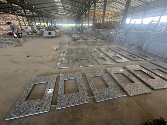 Granit Cambodia G654 berkinerja baik selama proses fabrikasi meja dapur standar, termasuk pemotongan, pemolesan, dan pembentukan tepi.