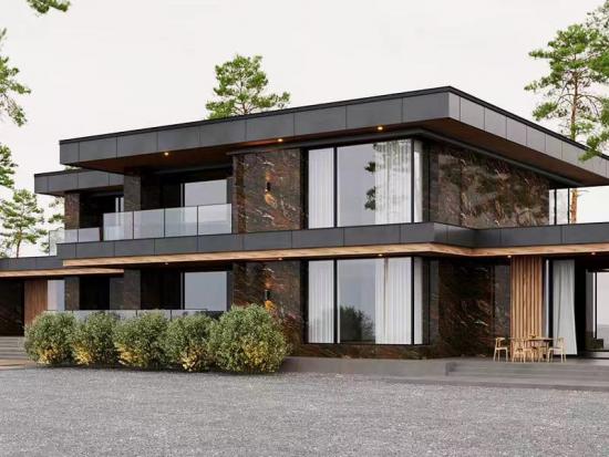 Detail Aksen: Digunakan untuk sekeliling perapian, tapak tangga, dan detail lainnya untuk menonjolkan kemewahan yang bersahaja.