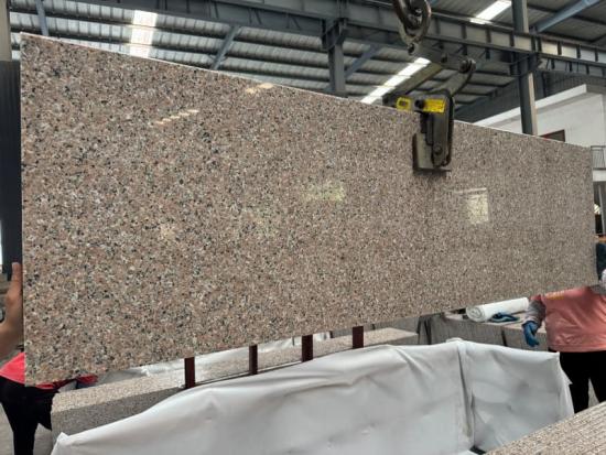 Batu ikonik ini memiliki dasar berwarna merah muda lembut dan hangat yang diselingi butiran mineral halus berwarna abu-abu dan putih, menciptakan tekstur yang halus namun elegan yang melengkapi gaya desain tradisional maupun modern. Warna yang konsisten dan pola butiran yang seragam menjadikannya pilihan yang andal untuk proyek berskala besar di mana kesinambungan visual sangat penting.