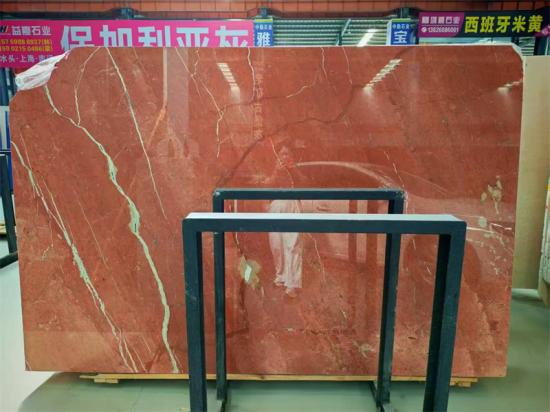 Marmer Merah Koral, Marmer alami premium ini, yang ditambang di Spanyol, memiliki dasar berwarna merah koral/coklat kemerahan yang hangat dengan urat silika putih yang halus. Marmer ini memiliki tekstur yang halus, kilap polesan tinggi, dan kemudahan pengolahan, ideal untuk lobi hotel kelas atas, hunian mewah, interior kantor, dan proyek-proyek ikonik. Hindari kontak dengan asam; penyegelan secara teratur akan menjaga kilau dan keindahannya.