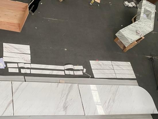 Lempengan Marmer Putih Volakas yang Dipasang Secara BookmatchedJika Anda tertarik dengan produk kami dan ingin mengetahui lebih detail, silakan tinggalkan pesan di sini, kami akan membalas Anda sesegera mungkin