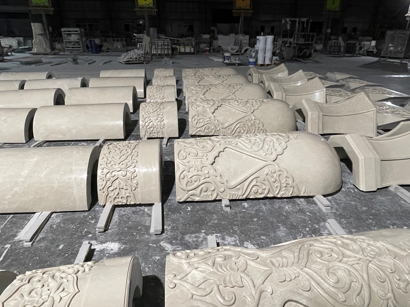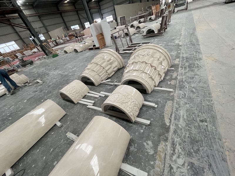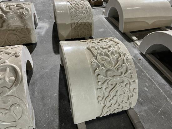 Marmer White Rose dipilih untuk proyek ini karena warna putihnya yang elegan dan kesesuaiannya untuk ukiran arsitektur.