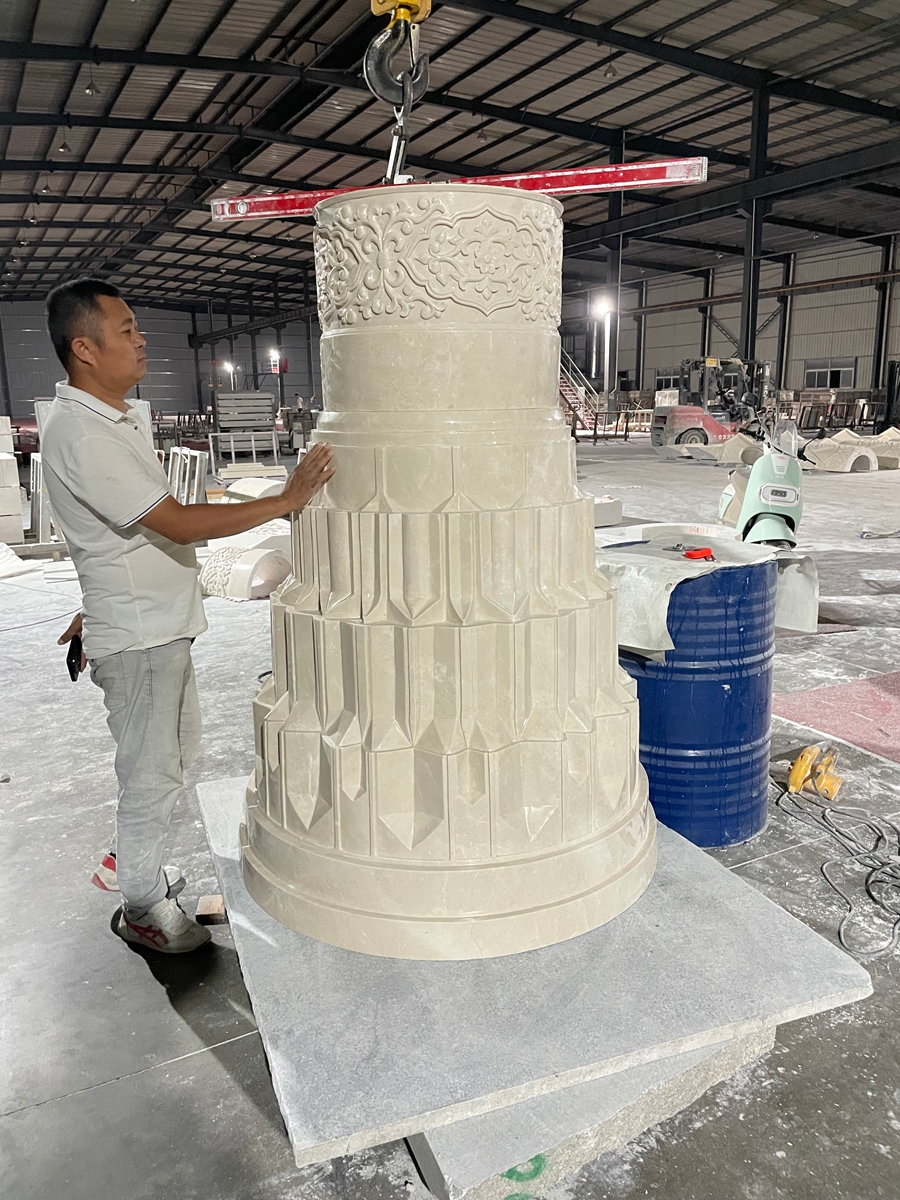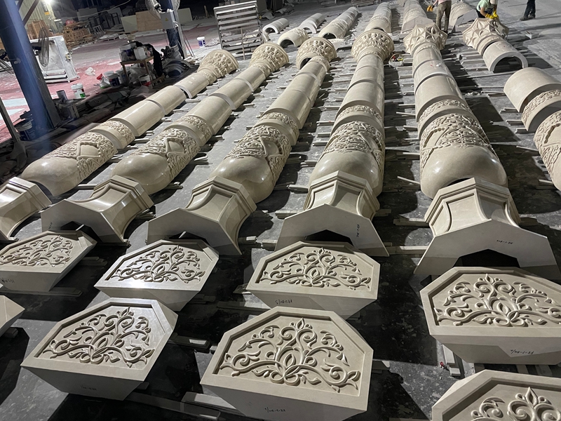 Kontrol ketat diterapkan pada tinggi kolom, diameter, pola ukiran, dan penyelesaian permukaan untuk memastikan keseragaman di seluruh proyek.