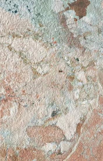 Lempengan batu sinter yang menakjubkan ini menampilkan pola dramatis dan mengalir berupa urat-urat merah marun tua yang berkelok-kelok di atas dasar abu-abu muda dan putih yang sejuk, membangkitkan keindahan alam lanskap pegunungan yang bergerak. Garis-garis organik yang menyerupai gelombang menciptakan kesan gerakan dan kedalaman, menjadikannya titik fokus yang mencolok untuk interior modern apa pun.