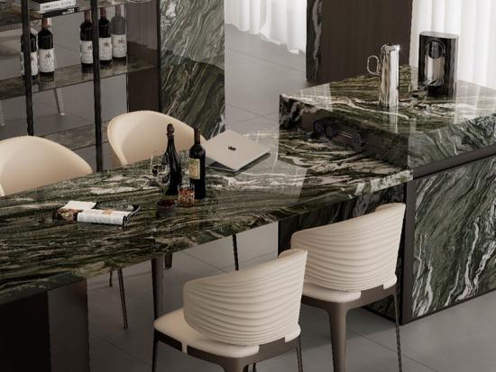 Baik Anda menginginkan estetika yang hangat dan nyaman atau pernyataan warna yang berani dan dramatis, Green Silk Quartzite menawarkan pilihan untuk memenuhi beragam visi desain dan kebutuhan yang dipersonalisasi.