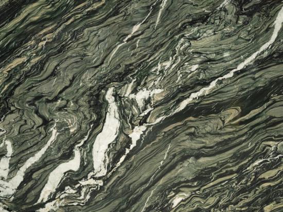 Kuarsit Sutra Hijau , juga dikenal sebagai Green Fusion Quartzite atau Green Silk Road Quartzite, adalah batu alam yang sangat diminati karena keindahannya yang unik. Batu ini memiliki palet warna hijau dengan beragam corak yang kaya, dari hijau muda hingga hijau tua, terkadang dengan sedikit sentuhan biru. Uratnya sangat bervariasi, menampilkan berbagai macam pola, mulai dari pola yang berani dan liar hingga latar belakang yang halus dan lembut, seringkali diselingi dengan rona emas, cokelat, atau abu-abu yang halus. Penampilan keseluruhannya elegan dan khas, dengan aliran yang halus, hampir seperti sutra.