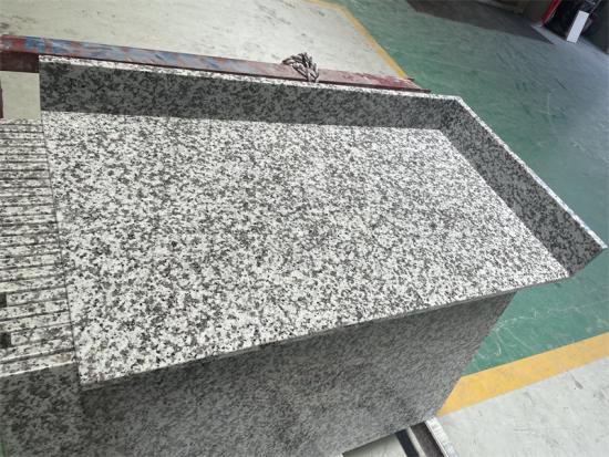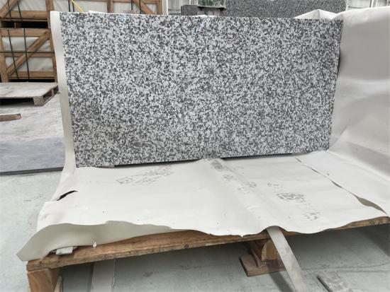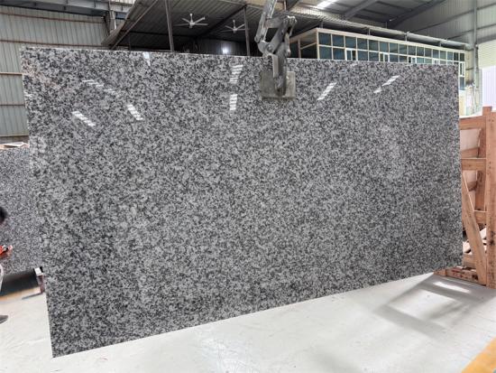 Granit ini memiliki dasar abu-abu padat dan berbutir halus, diselingi bintik-bintik mineral yang lebih gelap dan lebih terang. Teksturnya seragam dan elegan, memberikan estetika modern dan bersahaja.