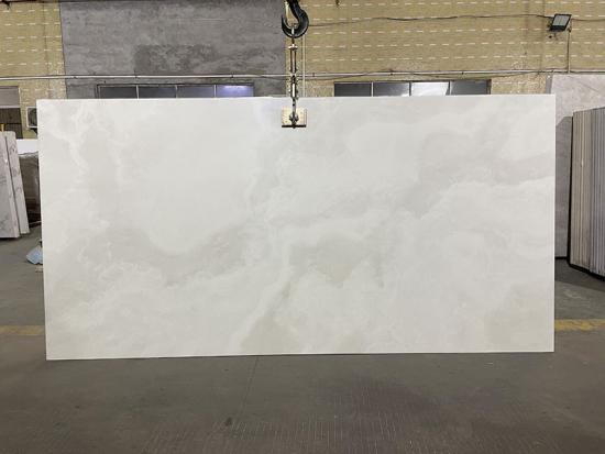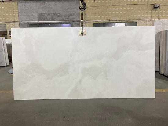 Aplikasi Ideal: Sangat cocok untuk ruang hunian mewah (meja dapur, meja rias kamar mandi, dinding aksen, latar belakang TV), proyek komersial kelas atas (lobi hotel mewah, pajangan ritel butik, pusat spa), dan interior kantor kelas atas (meja resepsionis, pelapis dinding aksen). Memberikan tampilan premium giok alami tanpa biaya perawatan yang mahal.