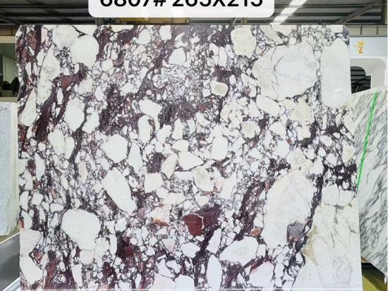 Karakter & Daya Tarik Estetika Bersumber dari tambang-tambang bergengsi di Italia, Marmer Viola Calacatta (juga dikenal sebagai Breccia Vagli) adalah batu alam terkenal di dunia yang mendefinisikan kemewahan avant-garde. Dicirikan oleh urat-uratnya yang dramatis, berwarna merah anggur dan ungu tua yang kontras dengan latar belakang putih bersih, marmer ini menawarkan estetika kontras tinggi yang berfungsi sebagai karya seni alami. Setiap lempengan memiliki pola breksi "pecah" yang unik, menjadikannya favorit bagi arsitek dan desainer yang mencari titik fokus yang berani dan canggih.