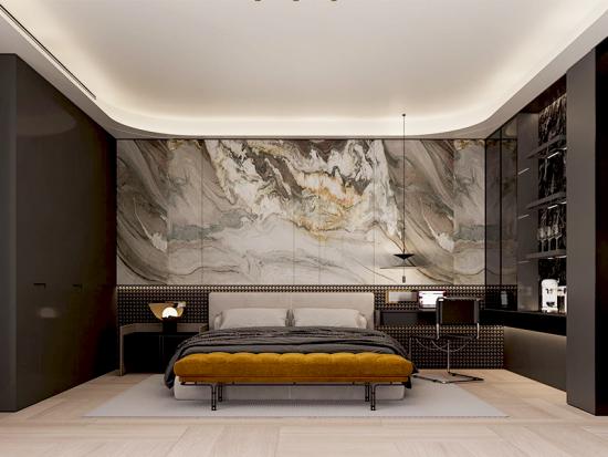 Ruang Komersial Premium: Lobi hotel, dinding fitur kantor pusat perusahaan, toko ritel mewah