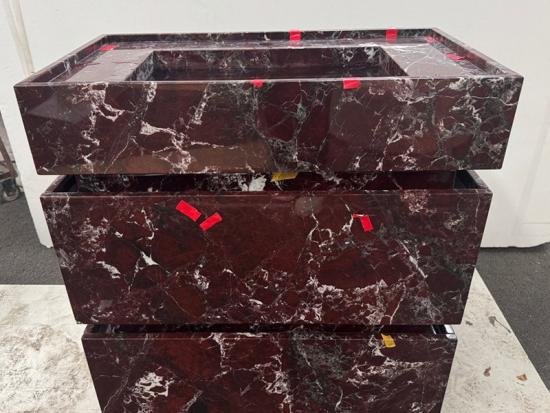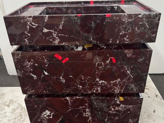 15-30 Days (Depends on project customization requirements)Ubah kamar mandi Anda menjadi tempat perlindungan kemewahan klasik dengan produk kami. Wastafel terintegrasi marmer Rosso Levanto . Bersumber dari tambang terbaik, Rosso Levanto Marmer ini merupakan marmer alami bergengsi yang terkenal karena warnanya yang merah ceri hingga ungu terong yang dalam dan dramatis, berpadu dengan urat putih yang mencolok dan terkadang urat hijau yang halus. Pewarnaan yang intens ini menciptakan estetika yang berani dan anggun yang telah menjadi ciri khas desain yang canggih selama berabad-abad.