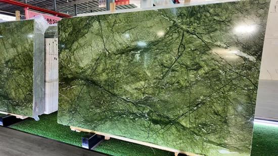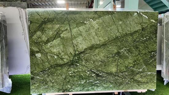 Marmer Verde Ming (juga dikenal sebagai Marmer Hijau Ming atau Marmer Hijau Dandong ) adalah batu alam premium yang digali di Tiongkok, terkenal karena warna dasarnya yang hijau rumput cerah, dihiasi urat-urat hijau tua yang mengalir dan bintik-bintik putih melingkar halus yang menciptakan estetika unik yang terinspirasi alam. Keindahannya yang serbaguna dan hasil akhir yang mudah beradaptasi menjadikannya pilihan ideal untuk aplikasi hunian dan komersial kelas atas, termasuk meja dapur, pelapis dinding, lantai, dan aksen dekoratif di dapur, kamar mandi, lobi, dan ruang perhotelan mewah.