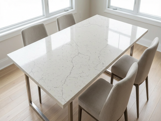Tampilan: Menampilkan permukaan putih bersih dengan urat abu-abu halus, White Attica Quartz meniru keindahan marmer sambil mempertahankan tampilan yang konsisten di permukaan yang luas.