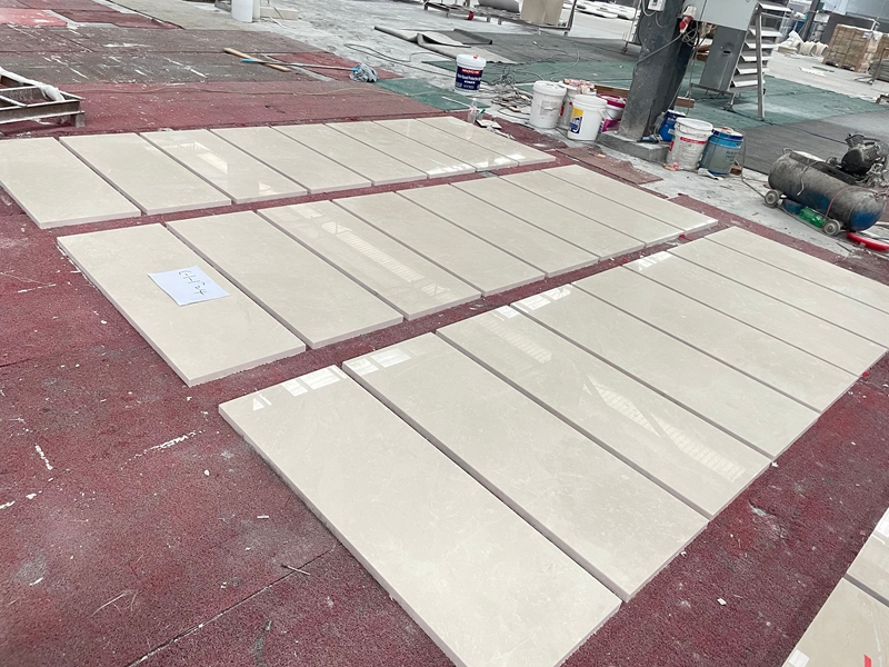 Lempengan-lempengan yang ditampilkan di sini dipasok untuk aplikasi arsitektur yang kemudian melibatkan fabrikasi batu sesuai pesanan.